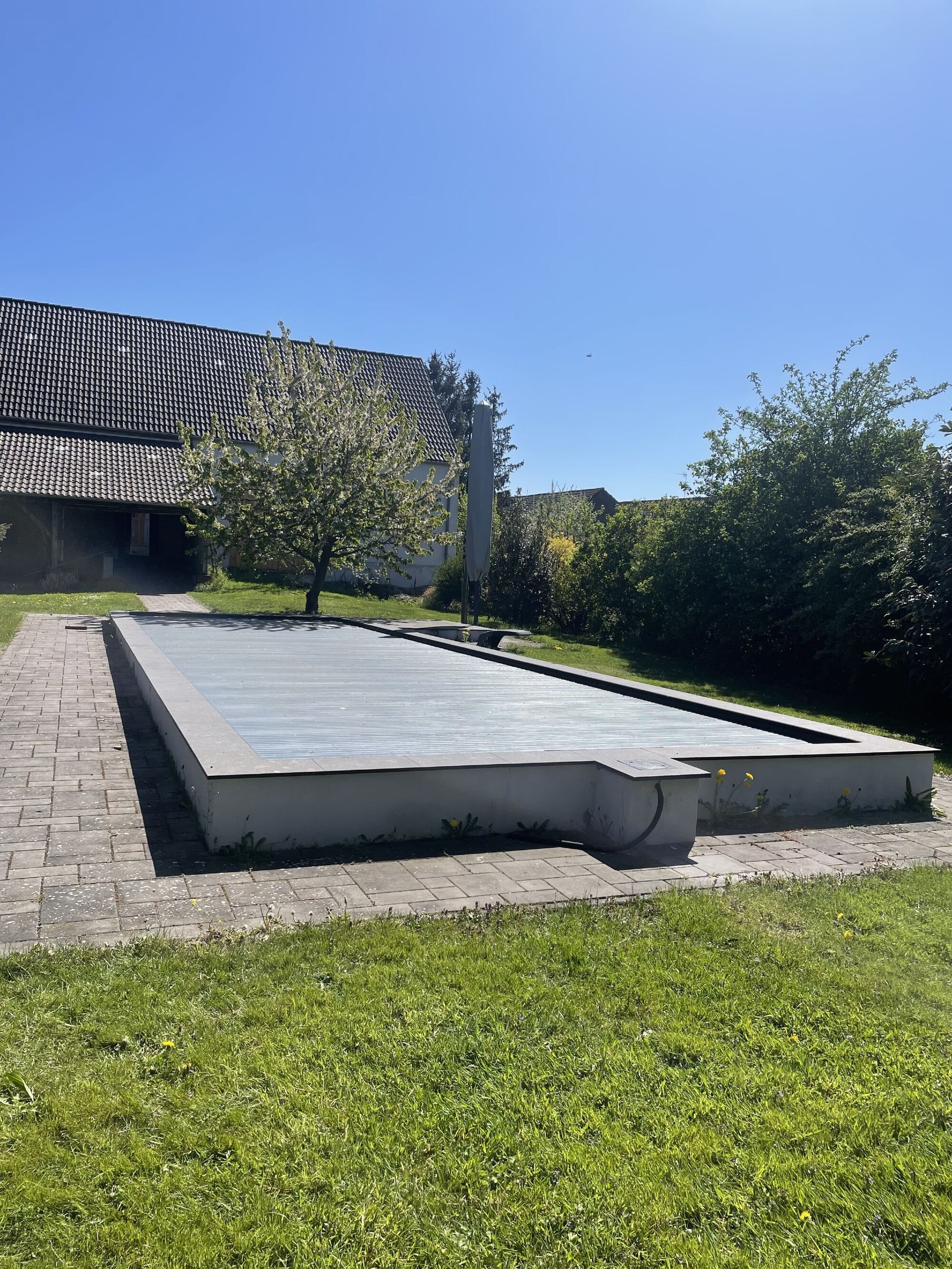 Autos können im Hof oder vor dem Grundstück geparkt werden.