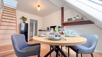 Die Unterkunft befindet sich in der Plünkenstraße 16, 28199 Bremen (Stadtteil Neustadt) – einer ruhigen, aber zentral gelegenen Seitenstraße. Kostenfreie öffentliche Parkplätze finden Sie in den umliegenden Straßen. Die Anfahrt ist unkompliziert – von der A281 sind es nur wenige Minuten bis zur Unterkunft. Check-in erfolgt kontaktlos über einen Schlüsselsafe. Den Zugangscode erhalten Sie rechtzeitig vor Anreise.
