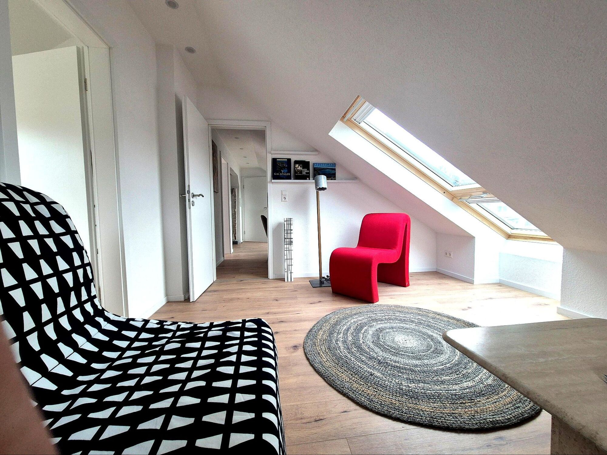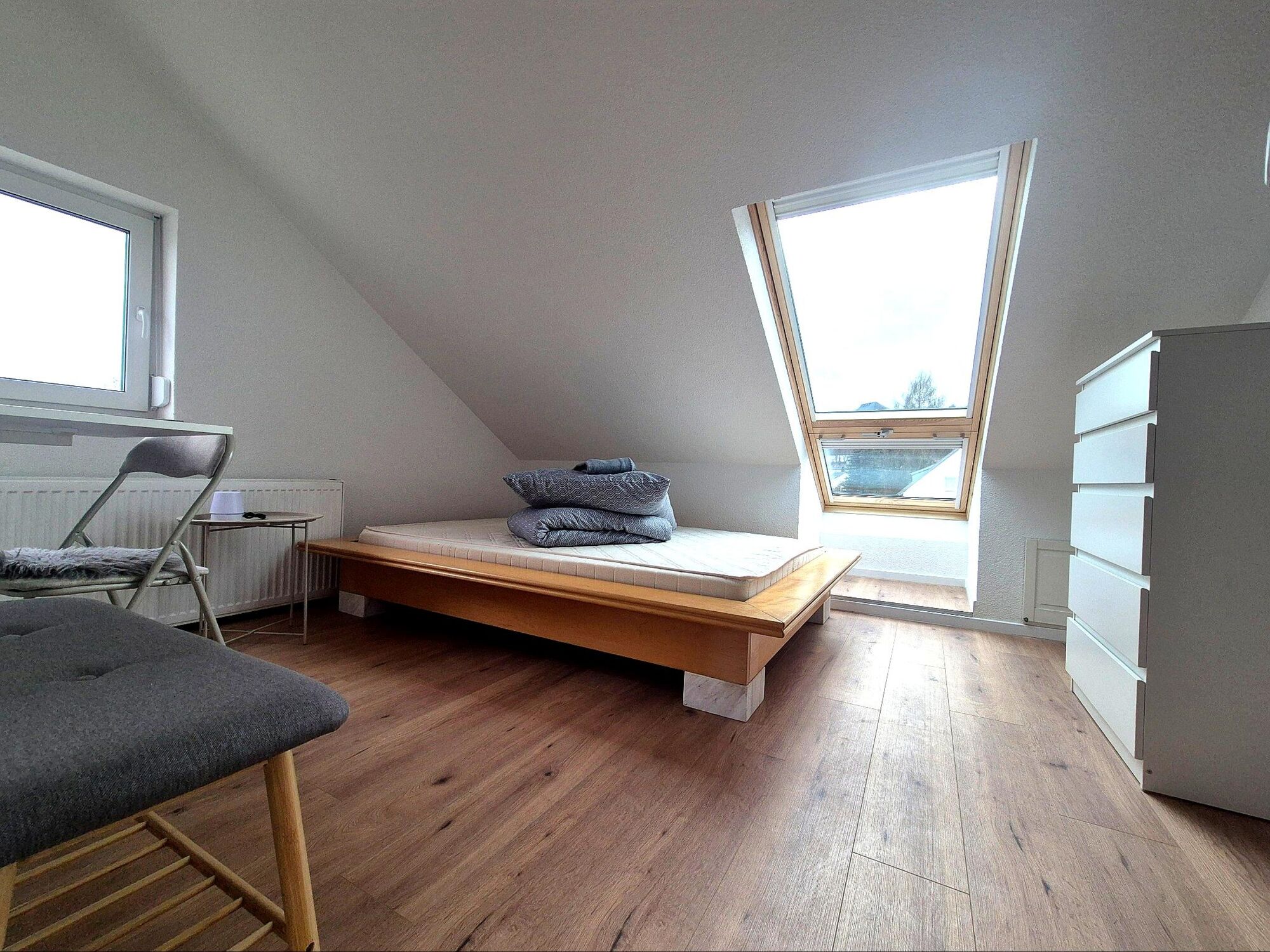 Möblierte drei Zimmer Wohnung im Dachgeschoss mit schönem Ausblick für 2-4 Personen, Doppelbetten für zwei Paare oder ein Paar und eine einzelne Person