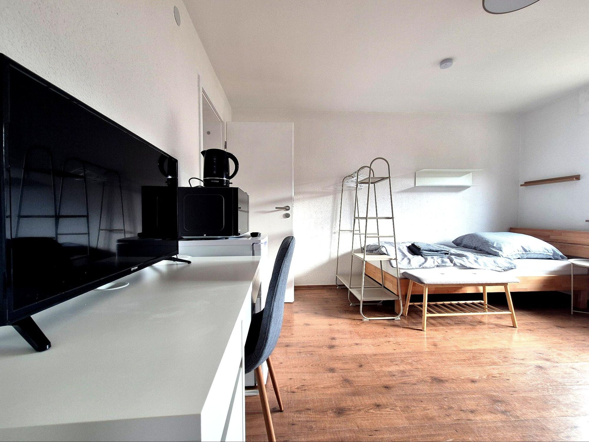 Zwei Zimmer Wohnung möbliert mit direktem Zugang zum Garten für 2-4 Personen: Bett, Schrank, Sofa/ Sessel und Kommode, Kühlschrank, Wasserkocher, TV Doppelbett oder Einzelbett wahlweise