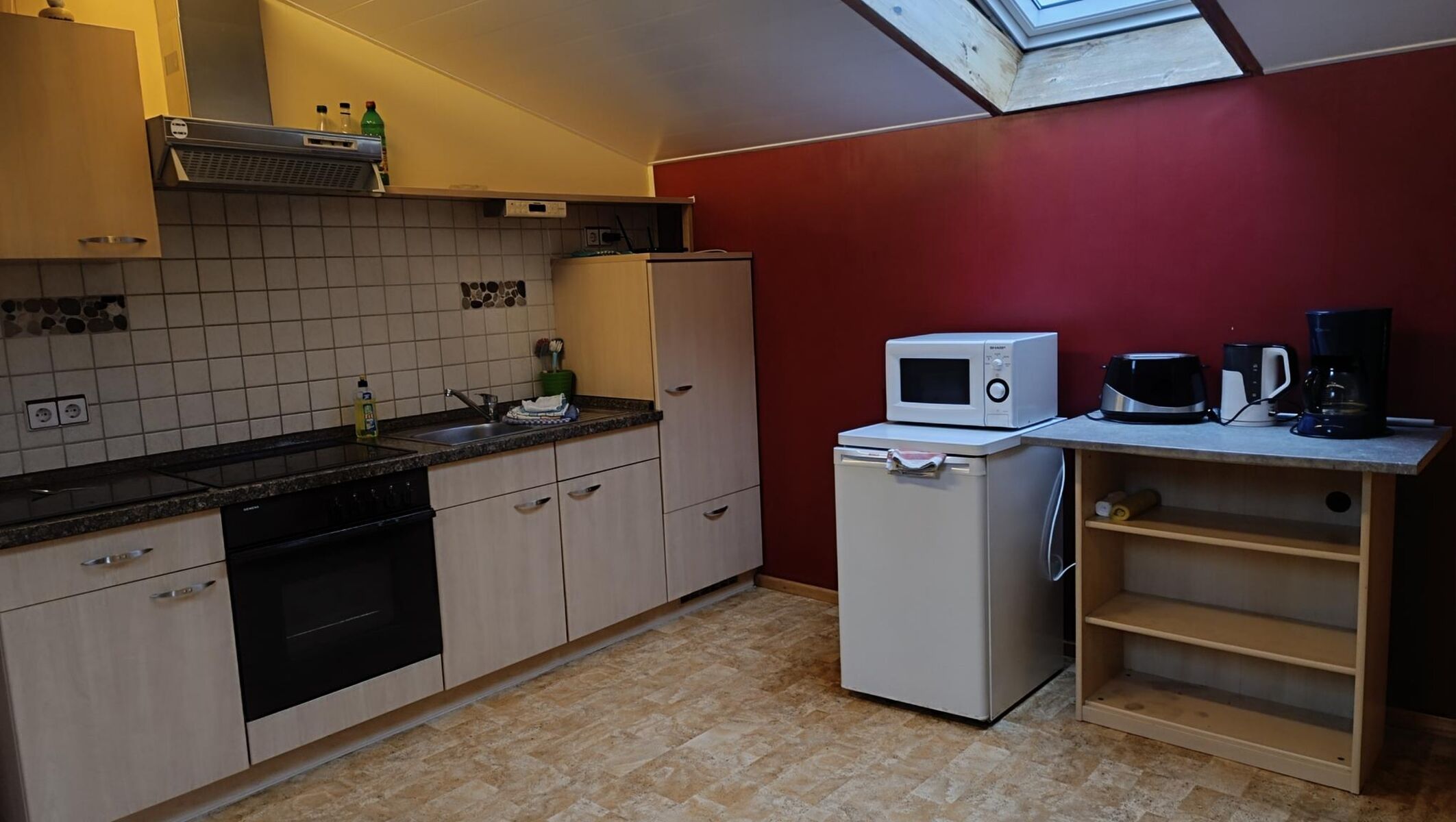 komplette Wohneinheit mit Schlafraum, Wohnküche mit Küchenzeile und Badezimmer, WLAN, Waschmaschine, Parkplatz für große Fahrzeuge