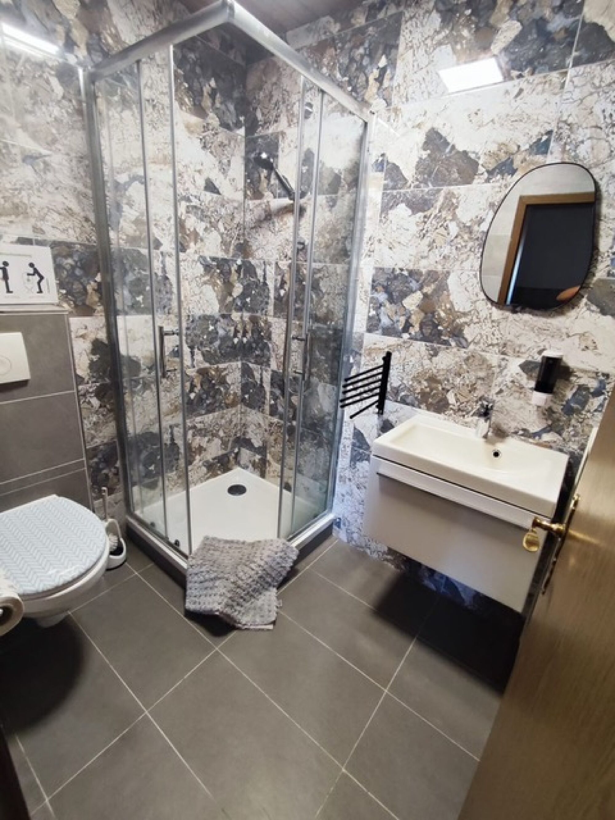 Zu der Wohnung auch noch 5 Zimmer je mit eigenem Bad / Dusche. Hier dann eine Gemeinschaftsküche.