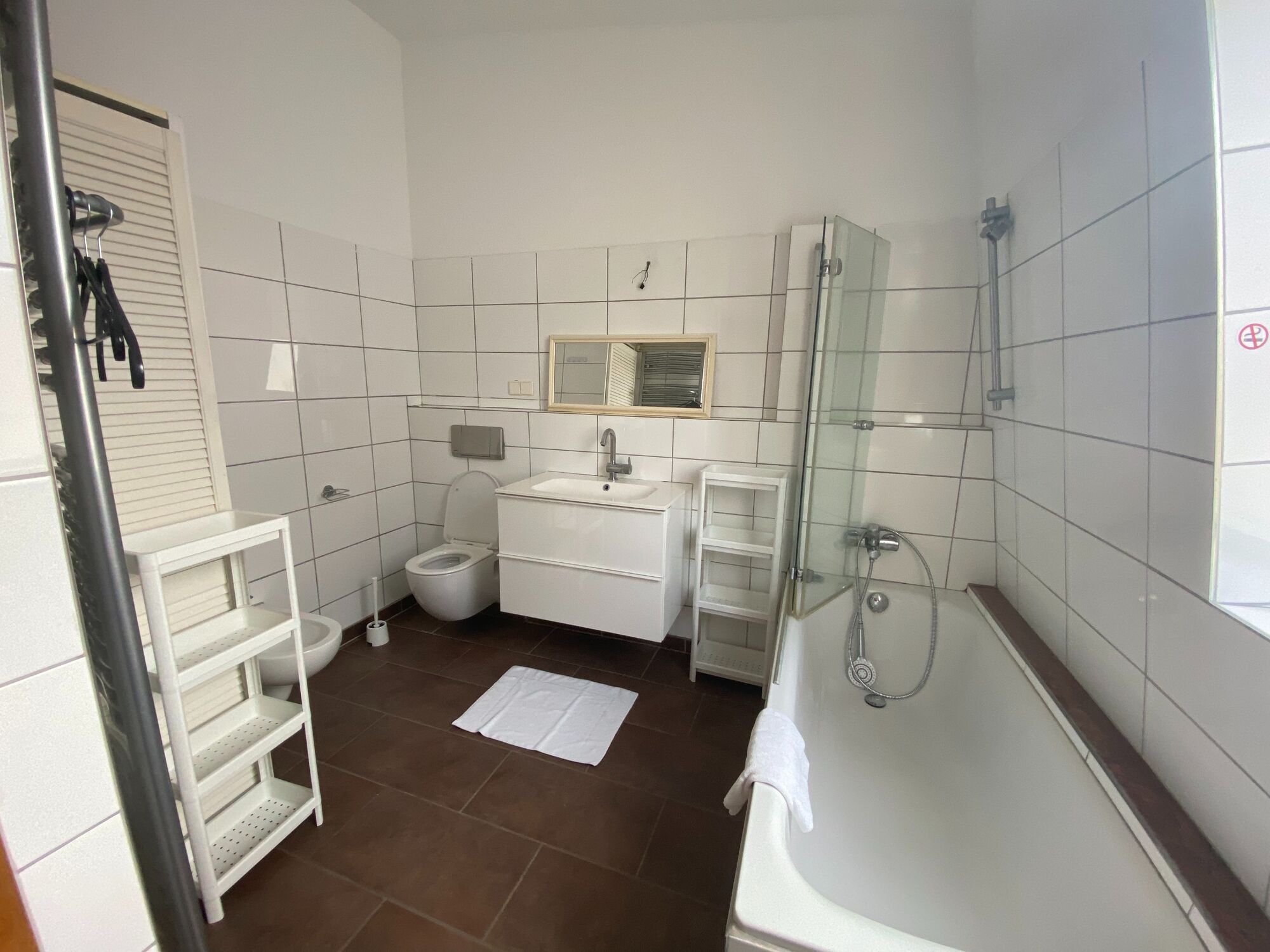 Jede Einheit besitzt ein eigenes Badezimmer mit WC, Einzeldusche und Waschbecken sowie Waschmaschine.