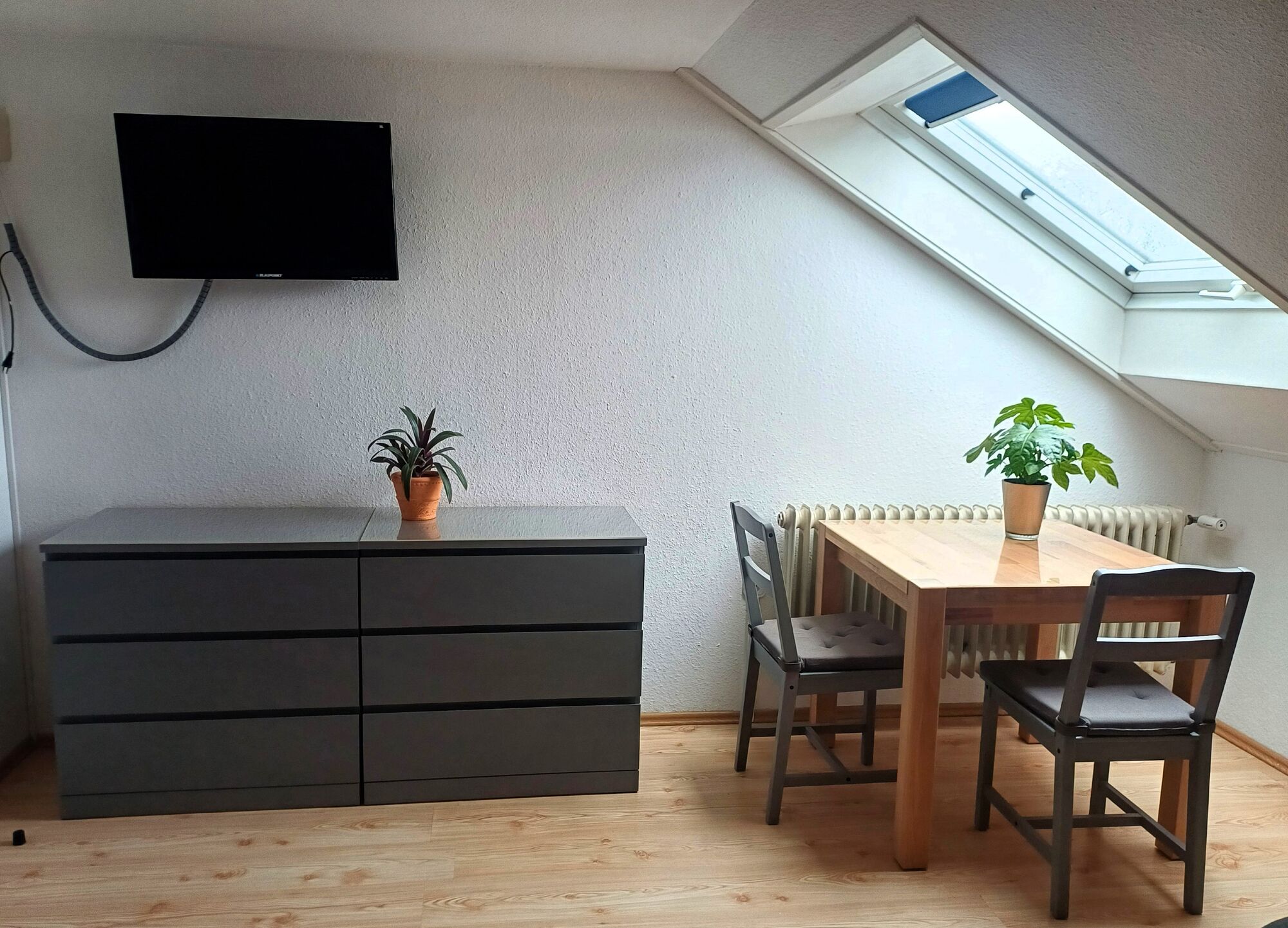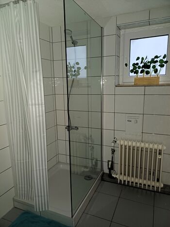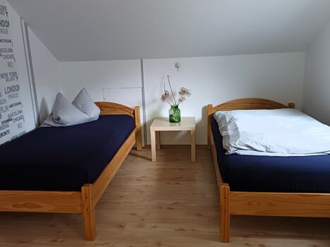 Ihre Mitarbeiter möchten Bad/WC und Küche zur Alleinnutzng, dann stehen im Obergeschoss drei Zimmer zur Verfügung. Insgesamt können da 7 Personen in sehr stabilen und bequemen Betten ruhen. Ein großer Balkon, separates WC und ein Tageslichtbad mit begehbarer Dusche lassen entspanntes Wohnen zu, Bei einer Belegung mit beispielsweise 6 Personen kommt man auf einen Übernachtungspreis von ca. 16 Euro. Egal wieviel MItarbeiter,:die Wohnung lädt für 100 Euro/Nacht VB ein.
