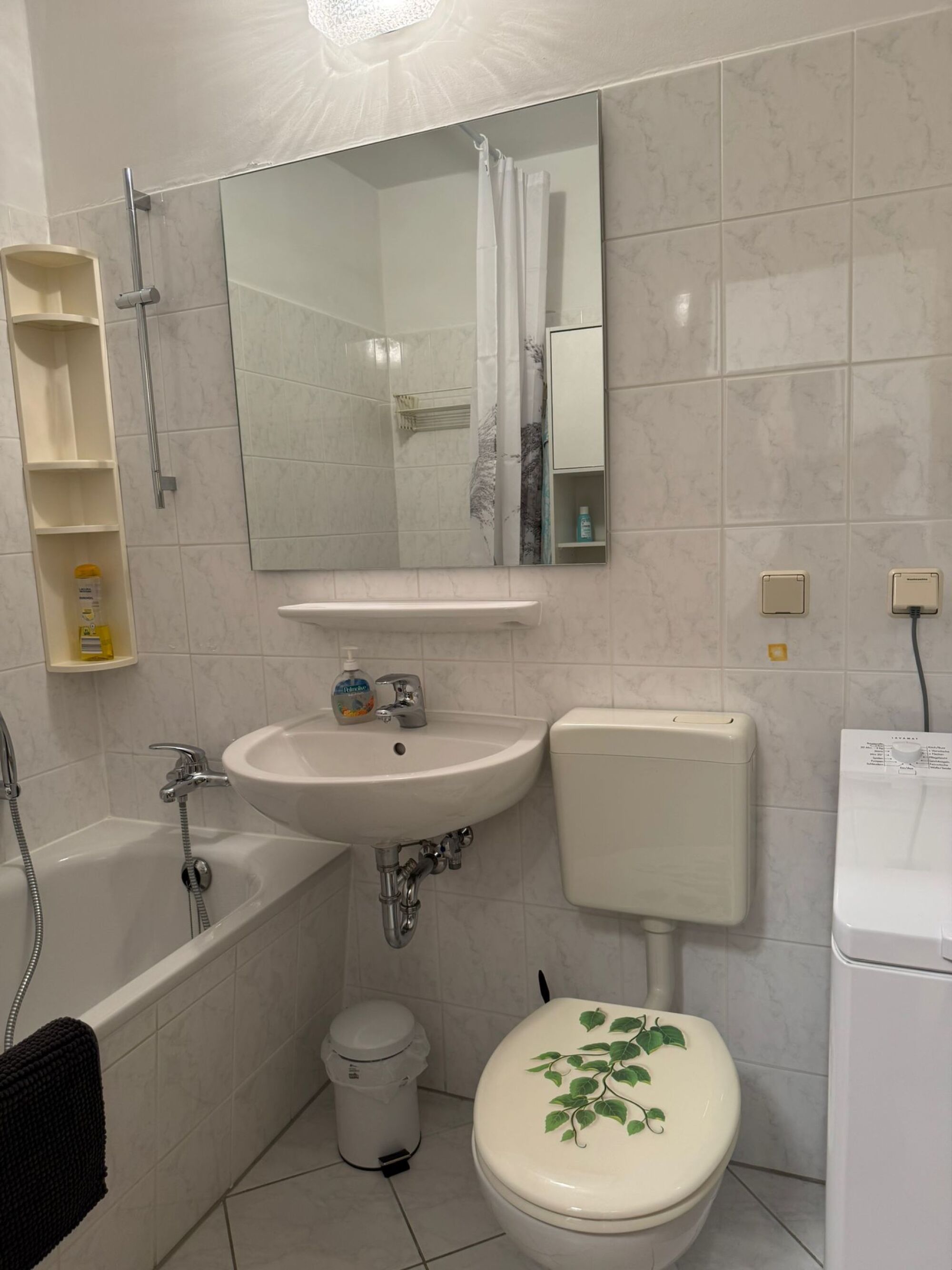 Im Badezimmer mit Badewanne stehen Handwaschlotion, Duschgel, Shampoo und ein Föhn zur Verfügung. Eine Waschmaschine inklusive Waschmittel ist auch vorhanden.