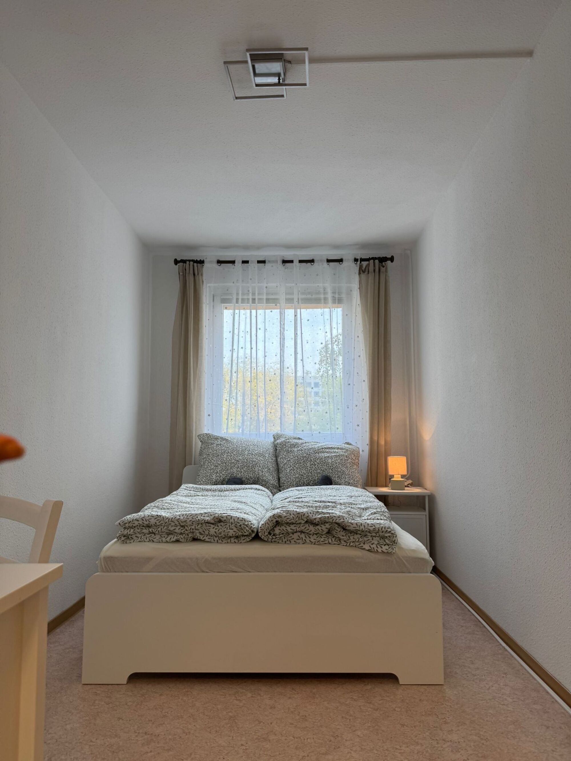 Das separate Schlafzimmer ist ebenfalls mit einem Doppelbett ausgestattet und verfügt über eine Kommode, die sich ideal als Arbeitsplatz nutzen lässt.