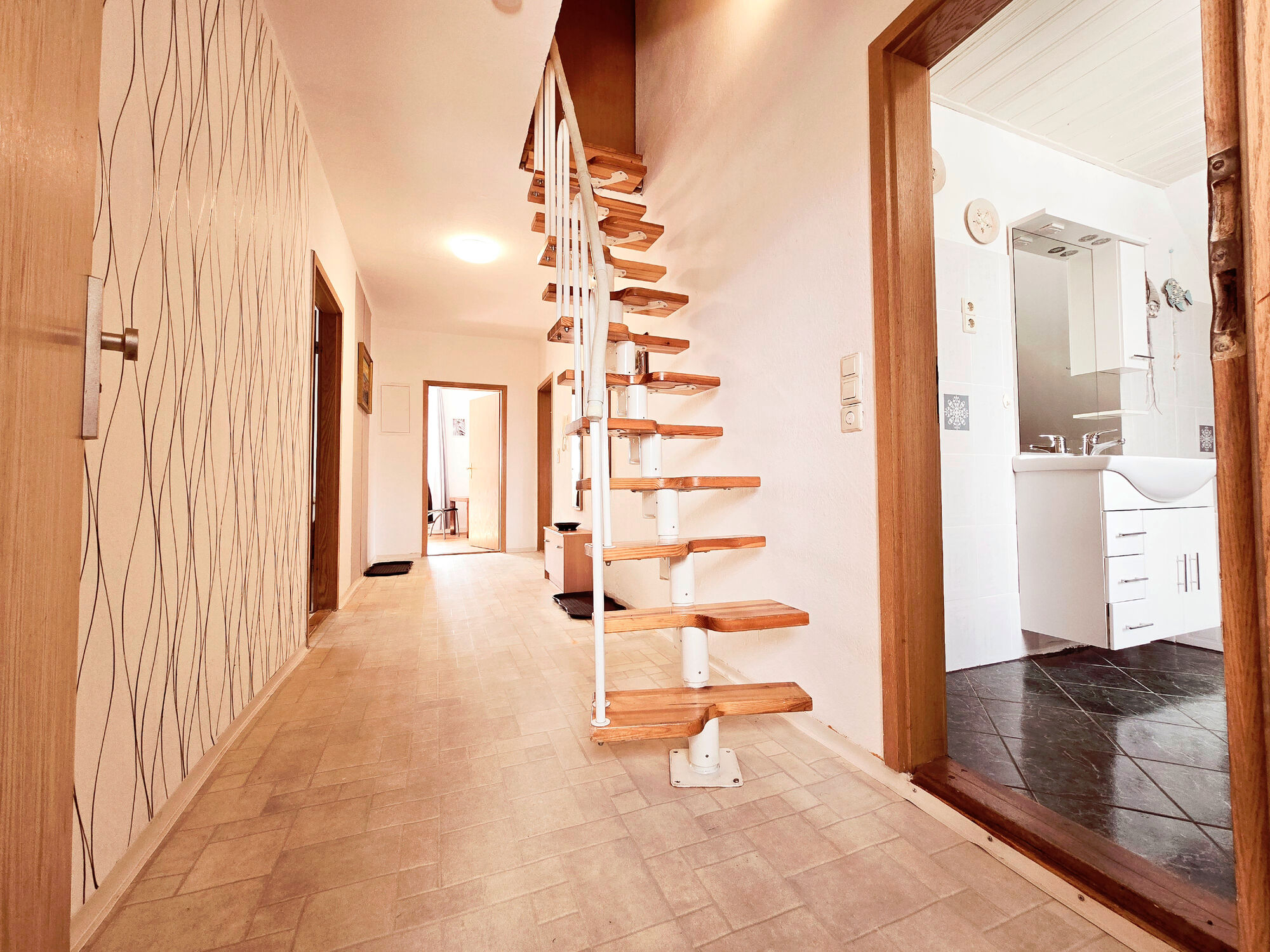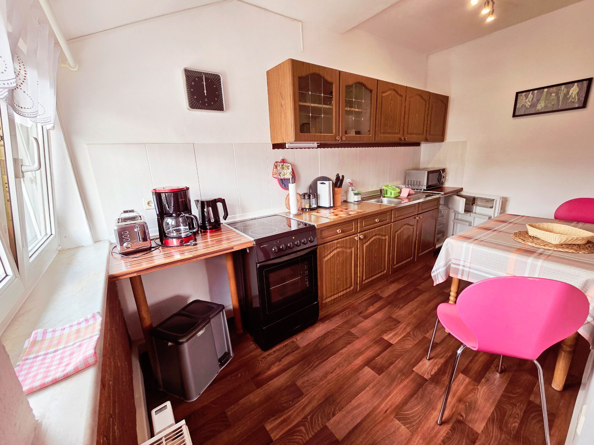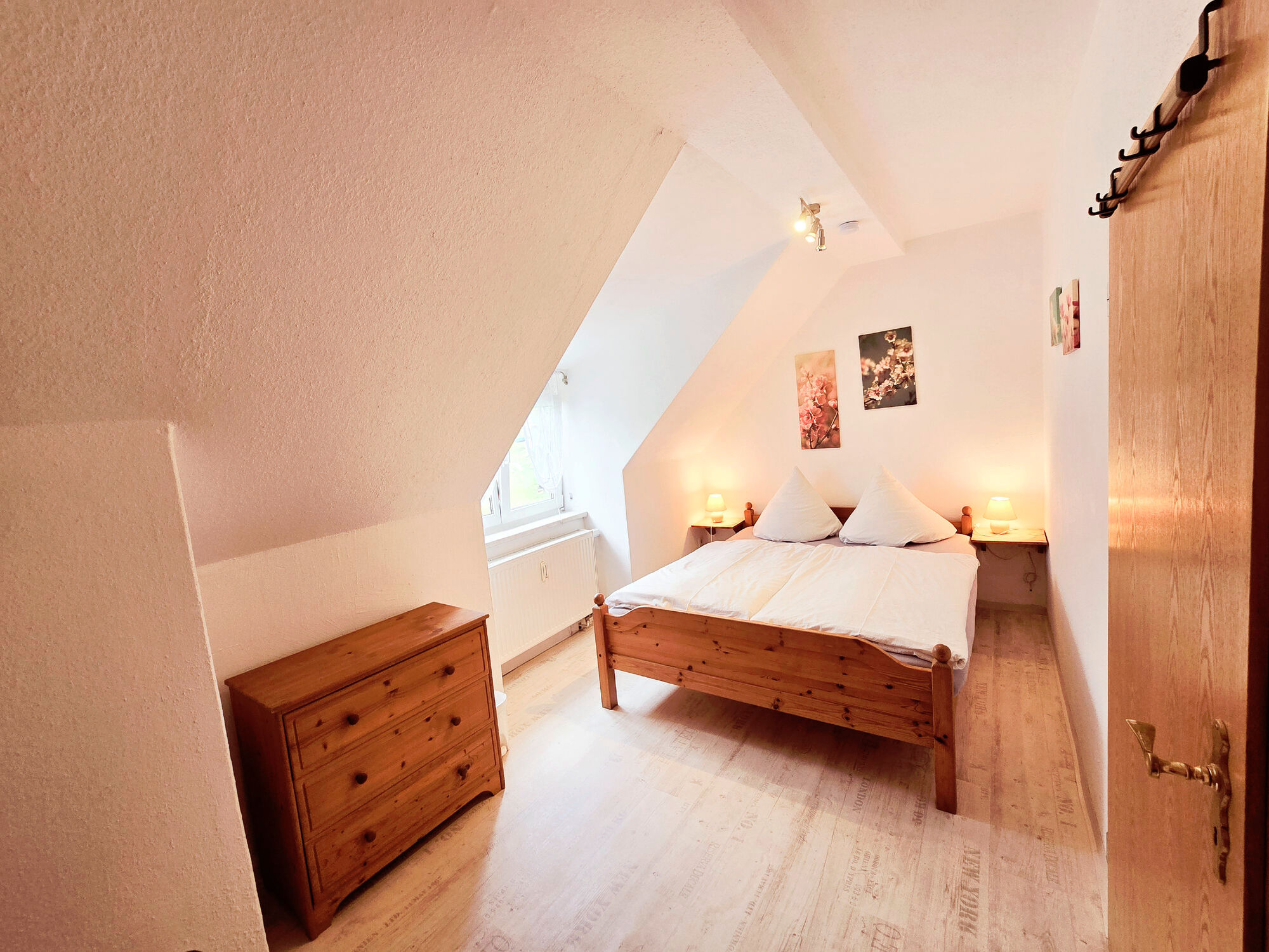 Unsere Ferienwohnung bietet Platz für bis zu 8 Personen und befindet sich im gemütlichen Dachgeschoss unseres Hauses. Auf großzügigen 75 m² erwartet Sie eine einladende und komfortable Atmosphäre