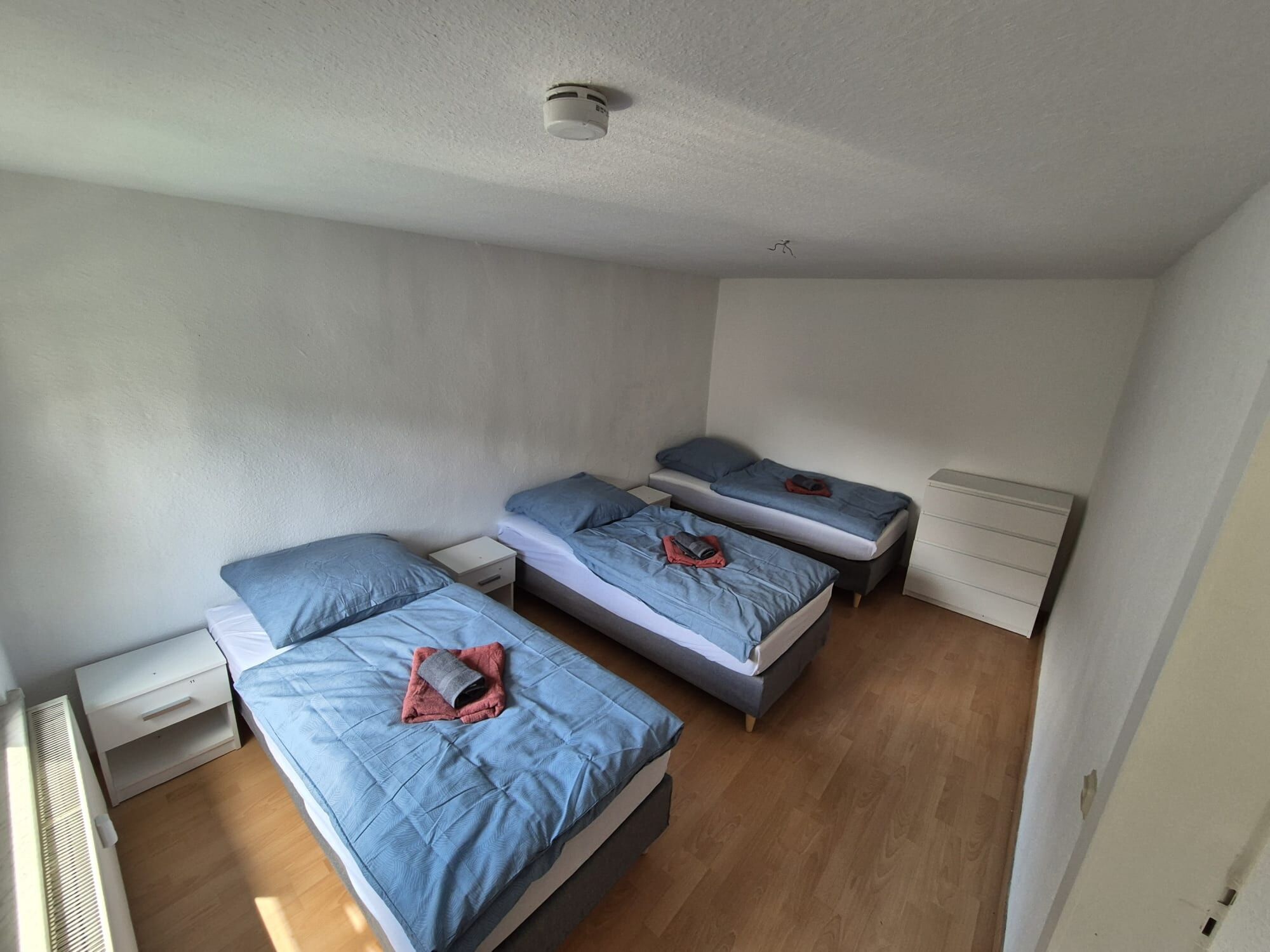 Schlafzimmer mit 3 × Einzelbett