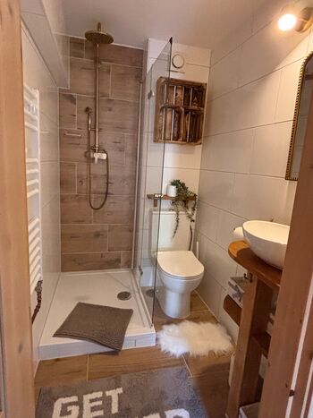 Küche, kleines Bad mit Dusche & WC