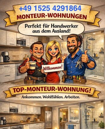 Sie suchen eine schöne Wohnung für Ihre Mitarbeiter dann schreiben sie uns doch über unsere Seite an . Ansprechpartner , wir verfügen über tolle Wohnungen und Haeuser , toll ausgestattet .4 /5/6 bis zu 7 Personen in einer tollen Wohnung, ab 5 Personen verfügen unsere Wohnungen immer über 2 neue Duschbäder !!