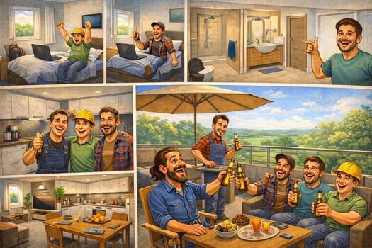 Wichtige Informationen zu unseren Vermietungen Wir möchten klarstellen, dass wir ausschließlich komplette Wohnungen vermieten – keine gemischten Unterkünfte mit unbekannten Mitbewohnern. Bei uns gibt es keine Anfragen für Einzelzimmer. Wir richten uns ausschließlich an Unternehmen, die für ihre Mitarbeiter Wohnraum suchen und Wert darauf legen, dass sich ihre Mitarbeiter wohlfühlen. Unsere Unterkünfte sind darauf ausgelegt, den Bedürfnissen von Berufstätigen gerecht zu werden. Wir bieten keine Zimmer an, die mit Betten vollgestellt sind, in denen mehrere Erwachsene auf engem Raum von nur 14 qm leben müssen. Wir sind der Meinung, dass niemand, der hart arbeitet, so wohnen sollte. Ihr Wohlbefinden und das Ihrer Mitarbeiter stehen für uns an erster Stelle. Vielen Dank für Ihr Verständnis!
