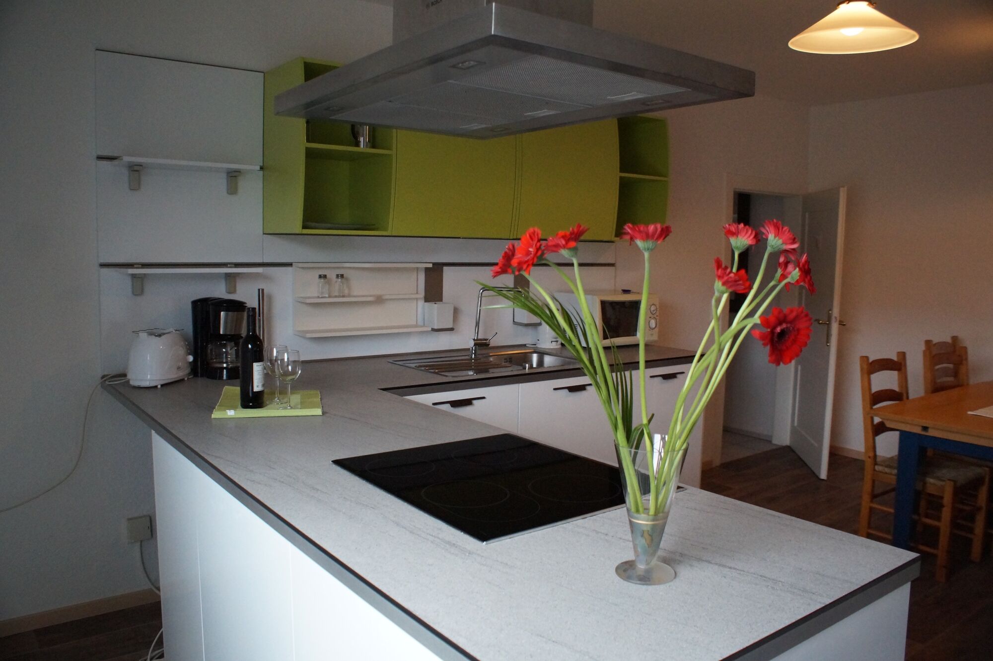 Ich biete drei separate Wohneinheiten in unterschiedlicher Größe. Die Wohnungen sind geräumig und verfügen alle über eine eigene Küche und mindestens eine Wasch-/Duscheinheit. Die Zimmer sind mit jeweils zwei bis drei Betten ausgestattet und verfügen über einen TV sowie einen Schrank und eine Sitzgelegenheit. Im gesamten Gebäudekomplex gibt es WLAN. Öffentliche Parkplätze sind in Hausnähe.