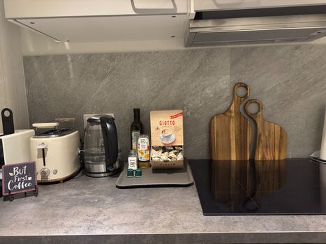 - Voll ausgestattete Küche mit Herd, Backofen, Nespresso-Automat u. v. m.