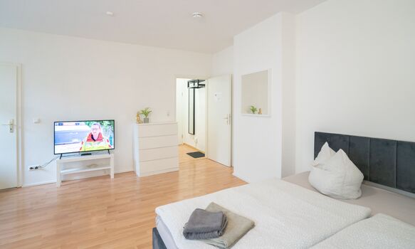 Funktionales 1-Zimmer-Apartment für kurze Aufenthalte, Klinikbesuche oder berufliche Termine in Magdeburg. Der Wohn- und Schlafbereich ist mit einem Doppelbett sowie einem Sofa ausgestattet und bietet Platz für ein bis zwei Gäste. Die Küche ist praktisch eingerichtet und verfügt über einen Backofen, das Badezimmer ergänzt die Ausstattung. Das Universitätsklinikum ist in ca. 12 Minuten zu Fuß erreichbar. Einkaufsmöglichkeiten und öffentliche Verkehrsmittel befinden sich in der Nähe.