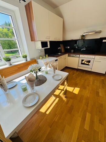 Moderne Wohnung mit voll ausgestatteter Küche und WLAN in ruhiger Umgebung nahe Parks und Geschäften
