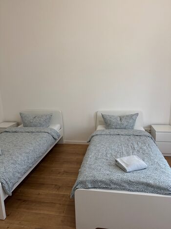 Sehr schöne, frisch sanierte 3-Zimmer-Wohnung in zentraler Lage von Melle. Die Unterkunft bietet zwei Badezimmer mit Dusche, insgesamt zwei Toiletten, große und großzügige Schlafräume und Platz für bis zu neun Personen. Voll ausgestattete Küche mit Sitzecke. Parkmöglichkeiten befinden sich direkt vor der Haustür.