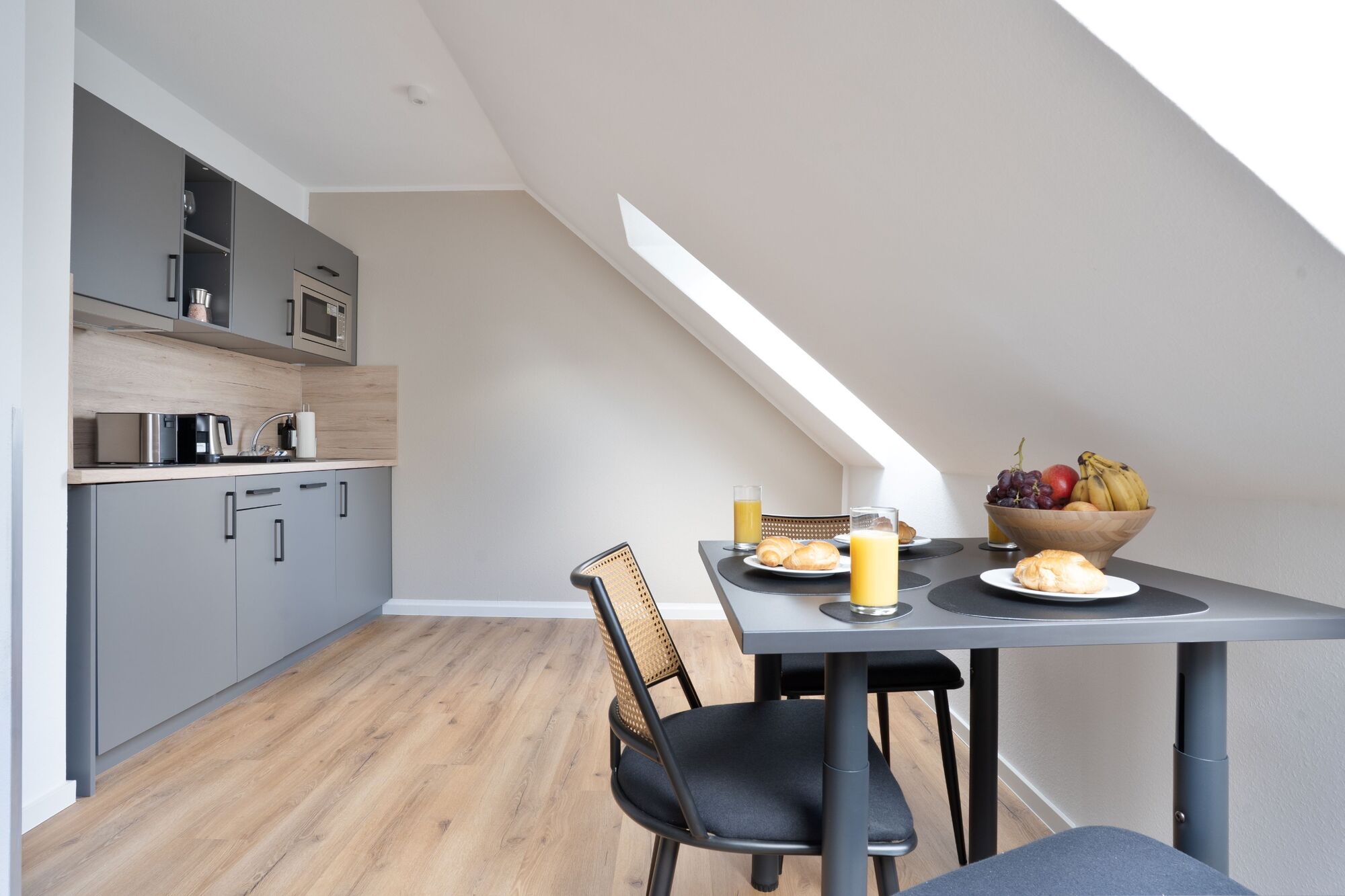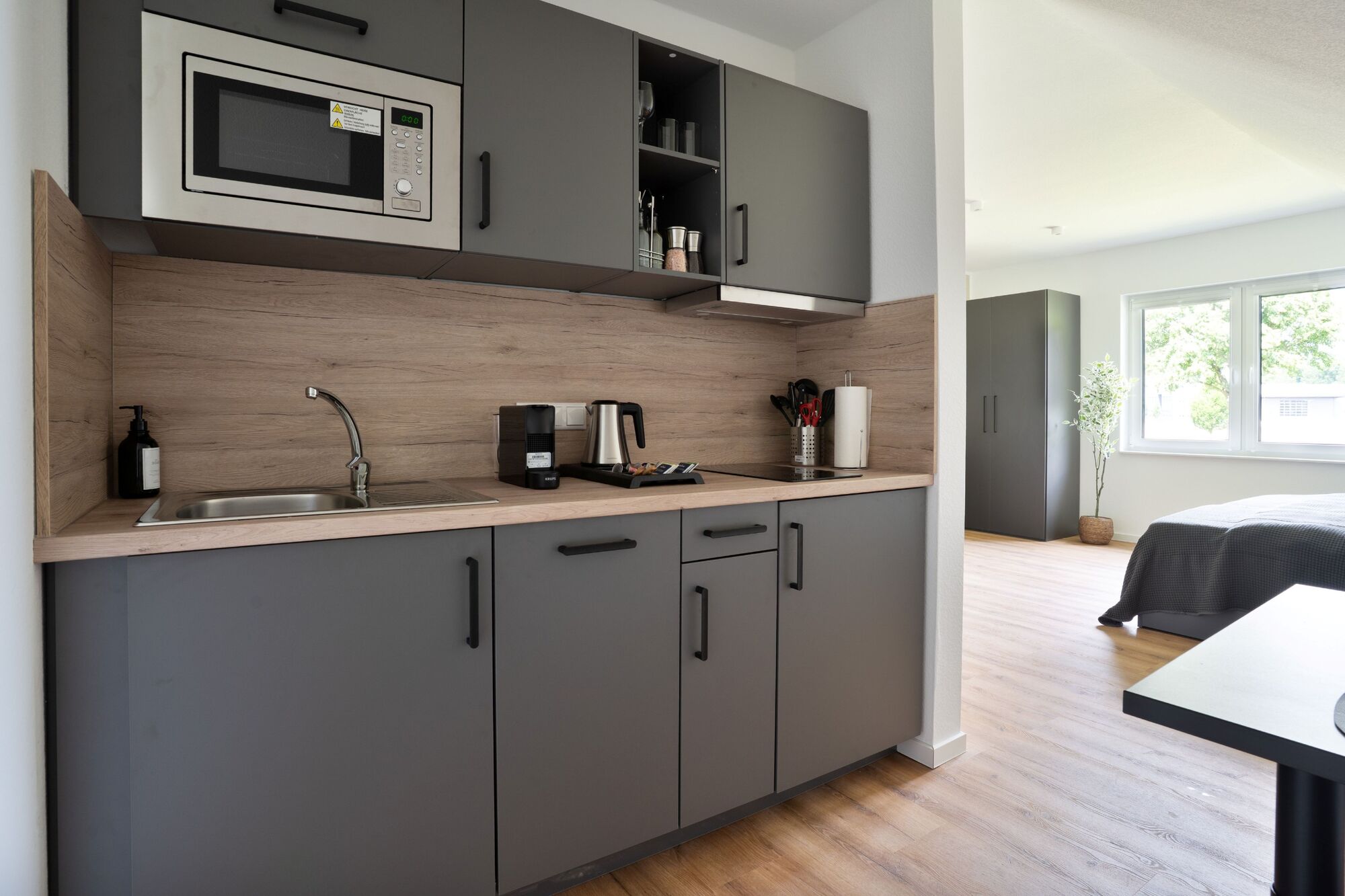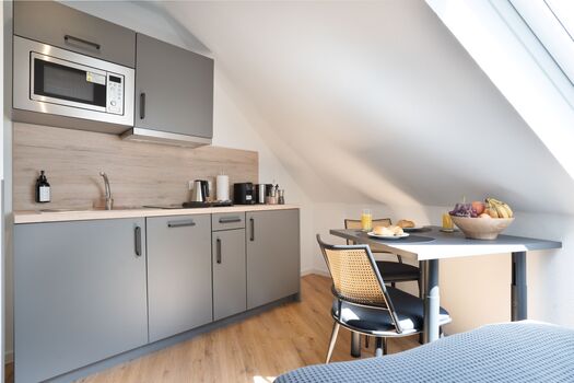 Modern eingerichtete Studios mit voll ausgestatteter Küche