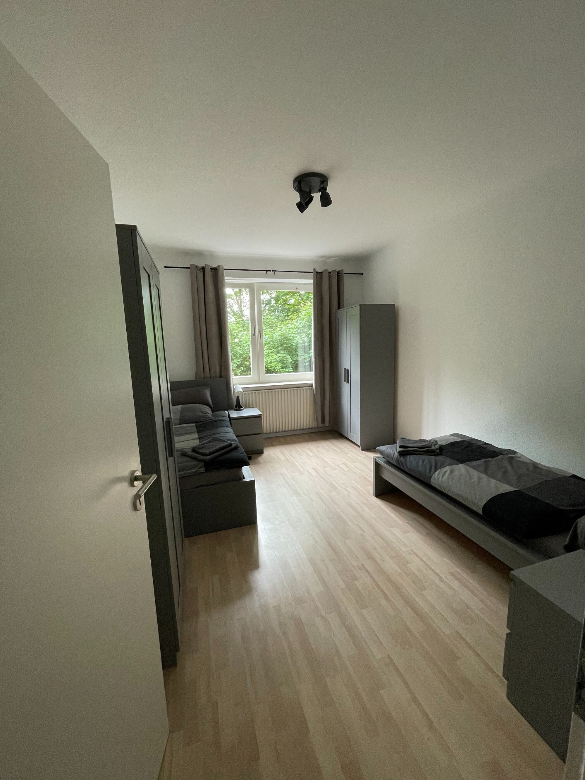 In jedem Zimmer befinden sich zwei Einzelbetten (insgesamt 4 Schlafplätze pro Wohnung).