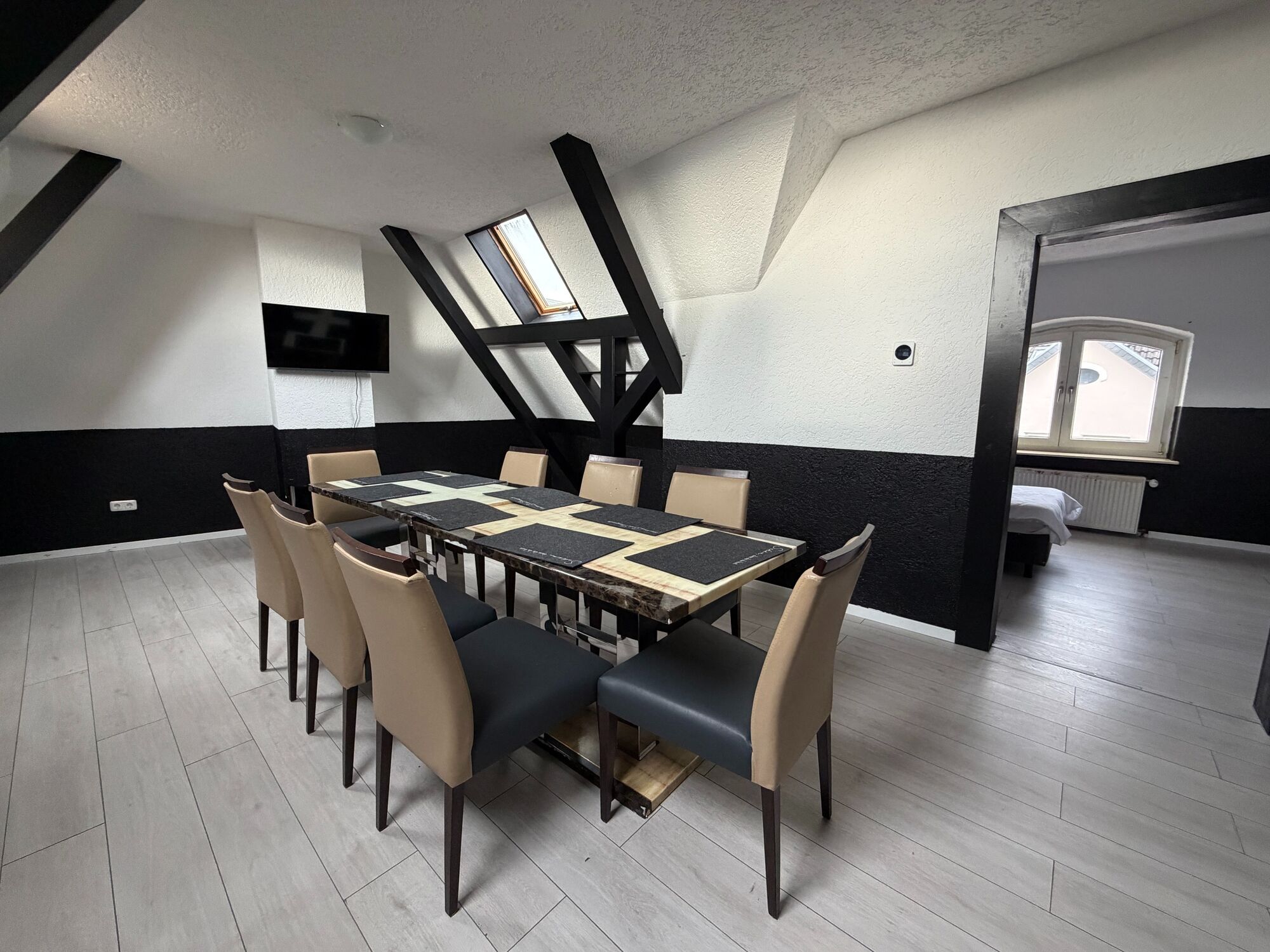 Wir bieten eine großzügige und vollständig möblierte Monteurwohnung in zentraler Lage – ideal für größere Teams und Projektgruppen, die zentral und unkompliziert untergebracht werden möchten.