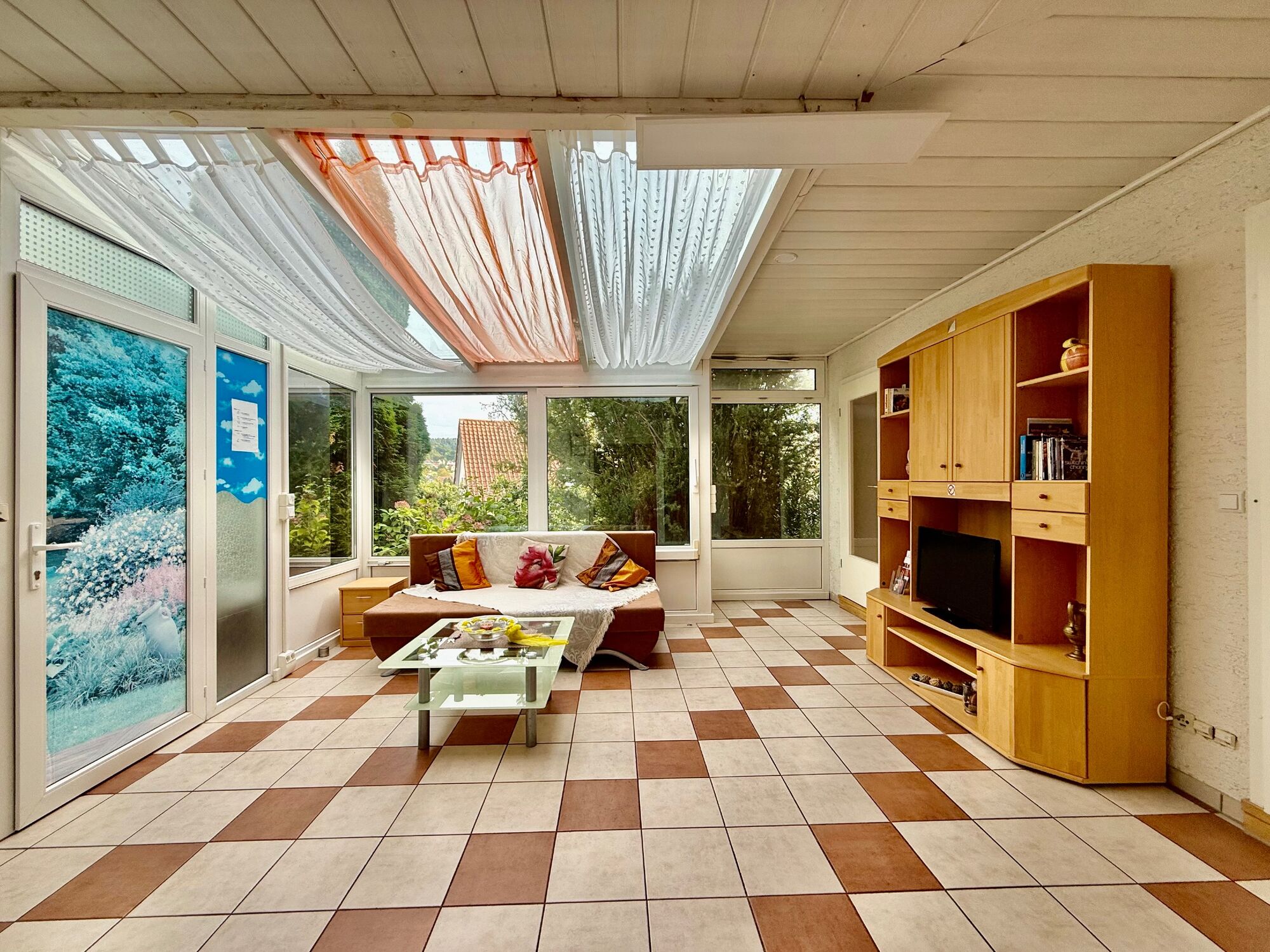 In Gelnhausen Haitz, direkt am Wald befindet sich diese möblierte Zweizimmerwohnung. Die ca. 54 qm große Ferienwohnung hat bis zu vier Schlafplätze und ist mit einem Duschbad, einer voll ausgestatteten Küche einem Schlafzimmer und einem Wohnzimmer im Wintergarten ausgestattet. Zusätzlich verfügt die Wohnung über einen Waschtrockner, Fernseher und WLAN. Stellplätze im Hof. Sonnenterrasse mit Grillplatz stehen unseren Gästen zur Verfügung.