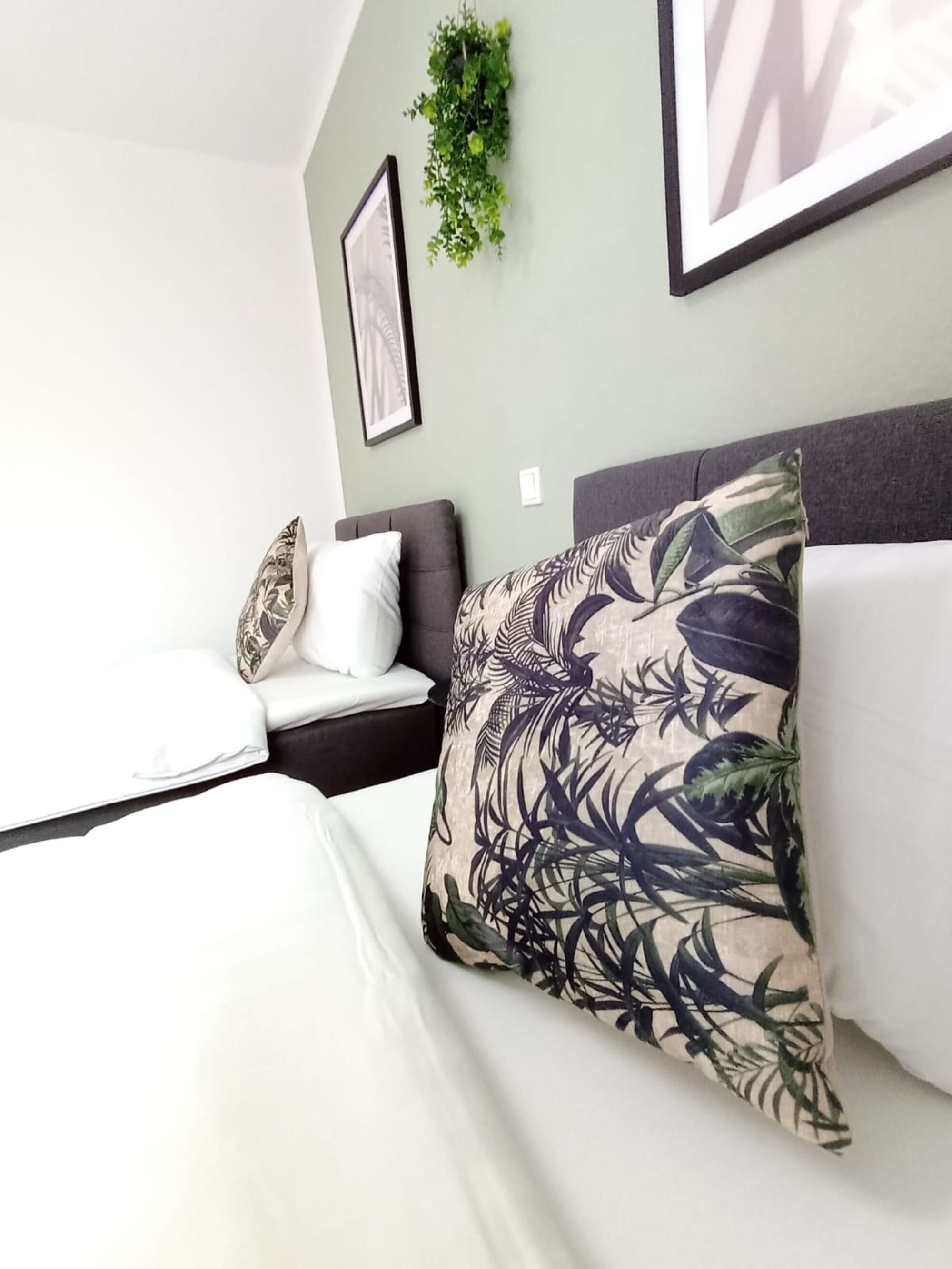 Genießen Sie erholsame Nächte in unseren gemütlichen Boxspringbetten und entspannen Sie auf dem einladenden Balkon.