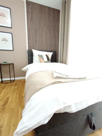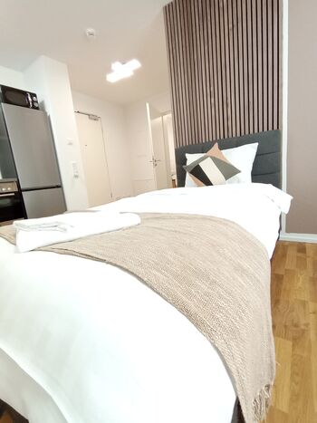 Unsere moderne Neubauwohnung bietet Platz für bis zu 4 Personen und ist ideal für Ihren Aufenthalt in der Stadt. Die Wohnung besticht durch eine voll ausgestattete Küche, in der Sie alle Ihre Lieblingsgerichte zubereiten können.