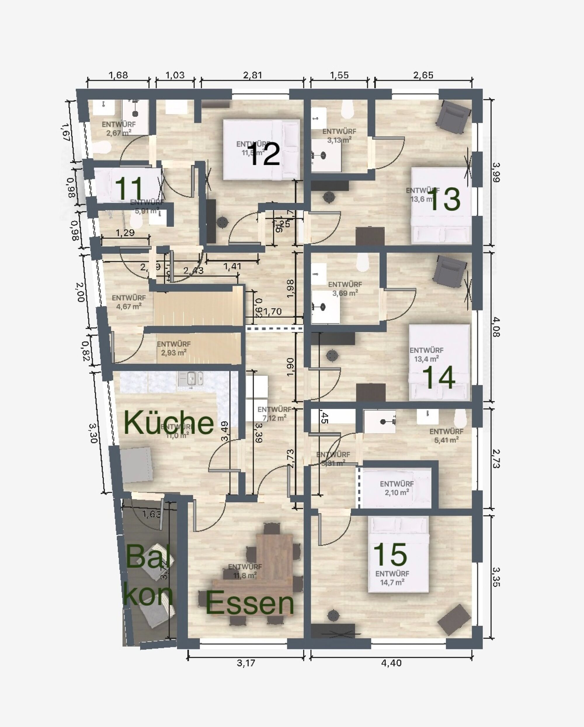 Räume und Schlafplätze pro Einheit