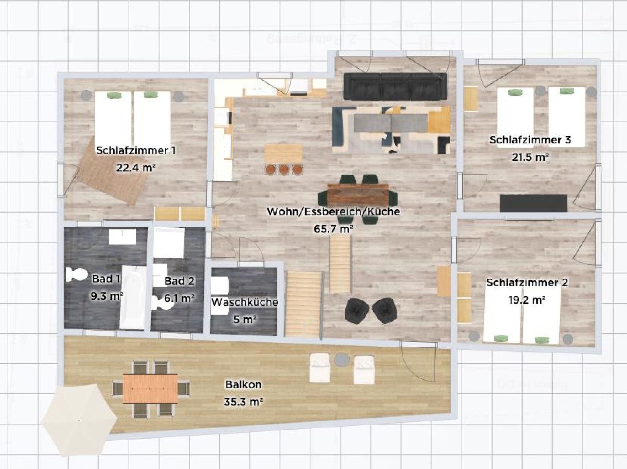 Penthouse Wohnung: Unsere stilvoll eingerichtetes Penthouse bietet Geschäftsreisenden ein zweites Zuhause auf Zeit. Das Apartment verfügt über zwei moderne Bad mit Rainshower und XXL Badewanne, Dachterasse sowie einen STV und ist hochwertig ausgestattet, um Ihnen maximalen Komfort zu gewährleisten. Mit einer voll ausgestatteten Küche, schnellem WLAN und kostenfreien Parkplätzen schaffen wir ideale Bedingungen für einen angenehmen Aufenthalt. Dank der zentralen Lage profitieren Sie von kurzen Weg
