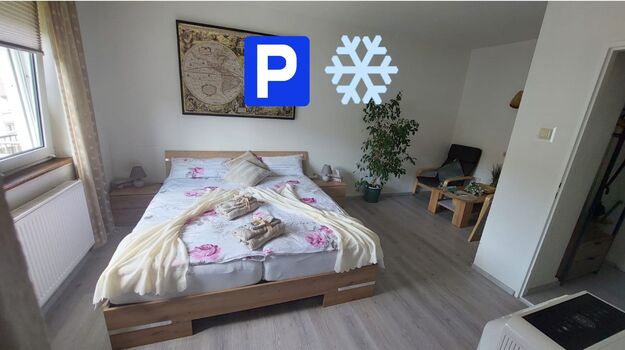 Kleine Wohnung ganz Groß! Ca. 1000 Meter von Bahnhof Baden-Baden entfernte Ferienwohnun verfügt über einen Schlafzimmer (mit einem Doppelbett, einem Fernseher, einer Internetverbindung, einem Wasserkocher, zwei Sesseln, einem Couchtisch, einem aufklappbaren Schreibtisch und einer Klimaanlage ausgestattet) und 1 Bad mit einer Badewanne. Handtücher und Bettwäsche werden gestellt. Bei Bedarf stellen wir Ihnen gerne ein Bügeleisen sowie ein Bügelbrett zur Verfügung. Zudem unterstützen wir Sie bei Scan- Druck- und Kopierarbeiten und bieten auf Anfrage einen Wäscheservice an. WLAN nutzen Sie in der gesamten Pension kostenfrei. Ein Einkaufszentrum sowie Bushaltestelle befinden sich direkt vor der Tür. Von hier aus gelangen Sie direkt in die Innenstadt von Baden-Baden. Ihren Wagen stellen Sie auf dem Privatparkplatz an der Unterkunft kostenfrei ab (Reservierung nicht erforderlich). Die Autobahn A5 verläuft in nur 3 km Entfernung. Ruhige Lage, ideal für Wanderer. Die Ferienwohnung befindet sich im Stadtteil Oos von Baden-Baden, nur 4 km vom historischen Stadtzentrum und dem berühmten Kurhaus entfernt. Das Schloss Hohenbaden erreichen Sie vom Pension Ringo aus nach 9 km und vom Flughafen Karlsruhe/Baden-Baden trennen Sie 8 km. Unser besonderer Service: Flughafenshuttle rund um die Uhr!