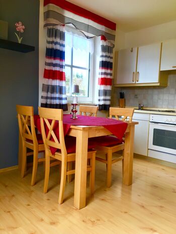 Unsere Ferienwohnungen liegen idyllisch am Ortsrand von Bad Steben. Die kl. Fewos (45qm)haben 1 Schlafzimmer und 1 mal DU/WC sowie einen Wohnraum mit sehr gut ausgestatteter Küche (Geschirrspüler, Kühlschrank, Gefrierfach u.s.w.) und Balkon. Diese können mit 2 Personen belegt werden. Zusätzliche Annehmlichkeiten sind ein großer Parkplatz hinten auf den Hof, weg von der Straße und WLAN sowie Wäschewechsel nach Wunsch. Auch ein Brötchenservice an die Wohnungstür ist möglich.