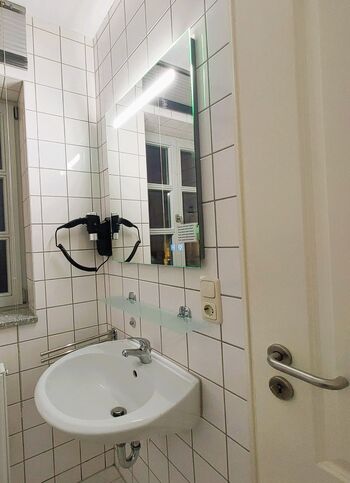 Das Eineinhalb-Zimmerapartment bietet einen Wohn-Schlafraum und einen kleinen Raum mit Küchenzeile und Essbereich. Das Badezimmer verfügt über Dusche und WC. Bei Einzelbelegung Preis auf Anfrage.